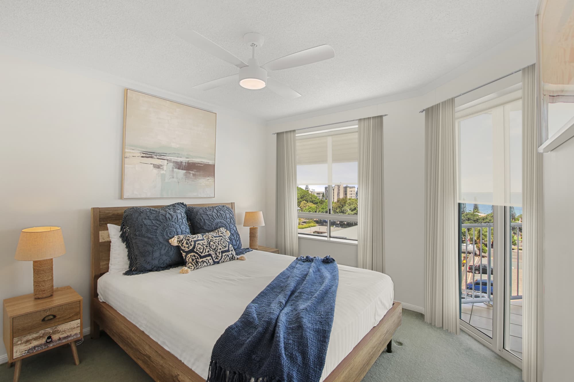 This top floor apartment is accessed via stairs only, guests who don’t mind a bit of a climb will be rewarded with some of the best views in Kings Beach. Ocean Breeze is a much-loved holiday home that has been thoughtfully refreshed and cared for. We welcome guests who will treat it as their own and enjoy everything this special Kings Beach location has to offer.