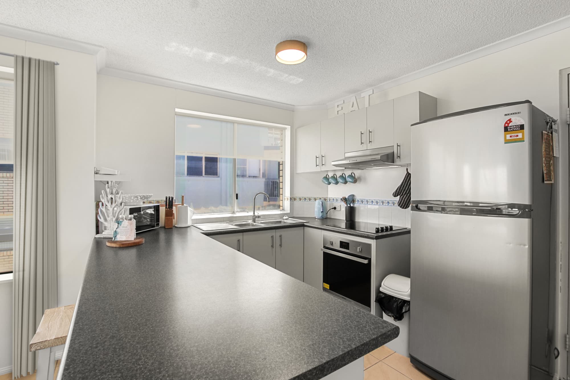Kings Beach is just a short 200m stroll via the back gate — across a quiet street and down through a child-friendly park. Everything you need is within easy reach:
