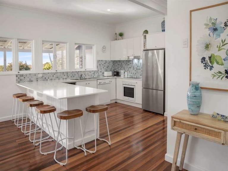 Trendy cafes, shops and a famous surf break are all within a few minutes’ walk of this tastefully renovated holiday accommodation. Stroll to local cafes for a morning coffee, ride the waves at iconic Moffat Headland, kick back at one of the Coast’s favourite beachfront parks, enjoy great cuisine at a selection of nearby restaurants – everything you could want in a memorable getaway.